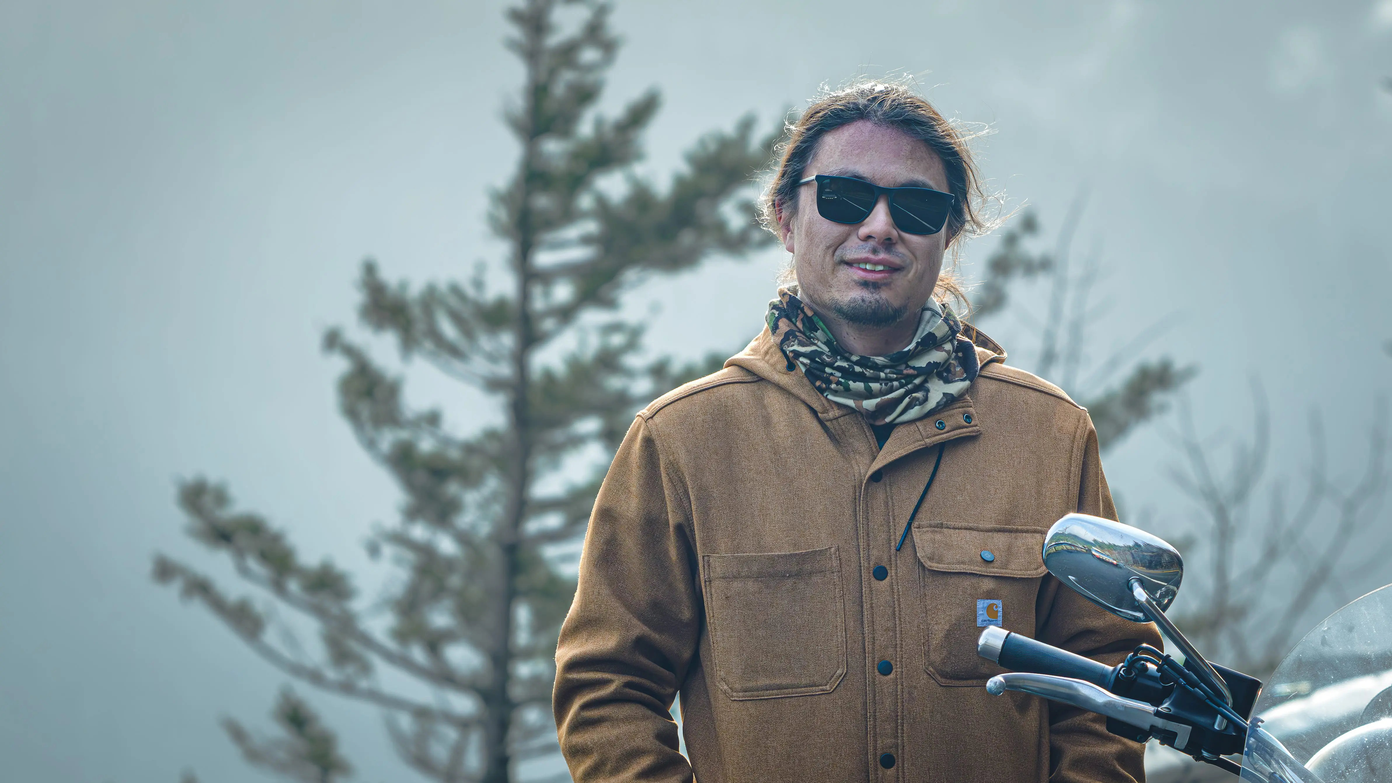 We got lucky with the memorials — four of them on a stretch of Highway 14 — but came across this biker enjoying the day. He was trying to take a selfie so I offered to help.