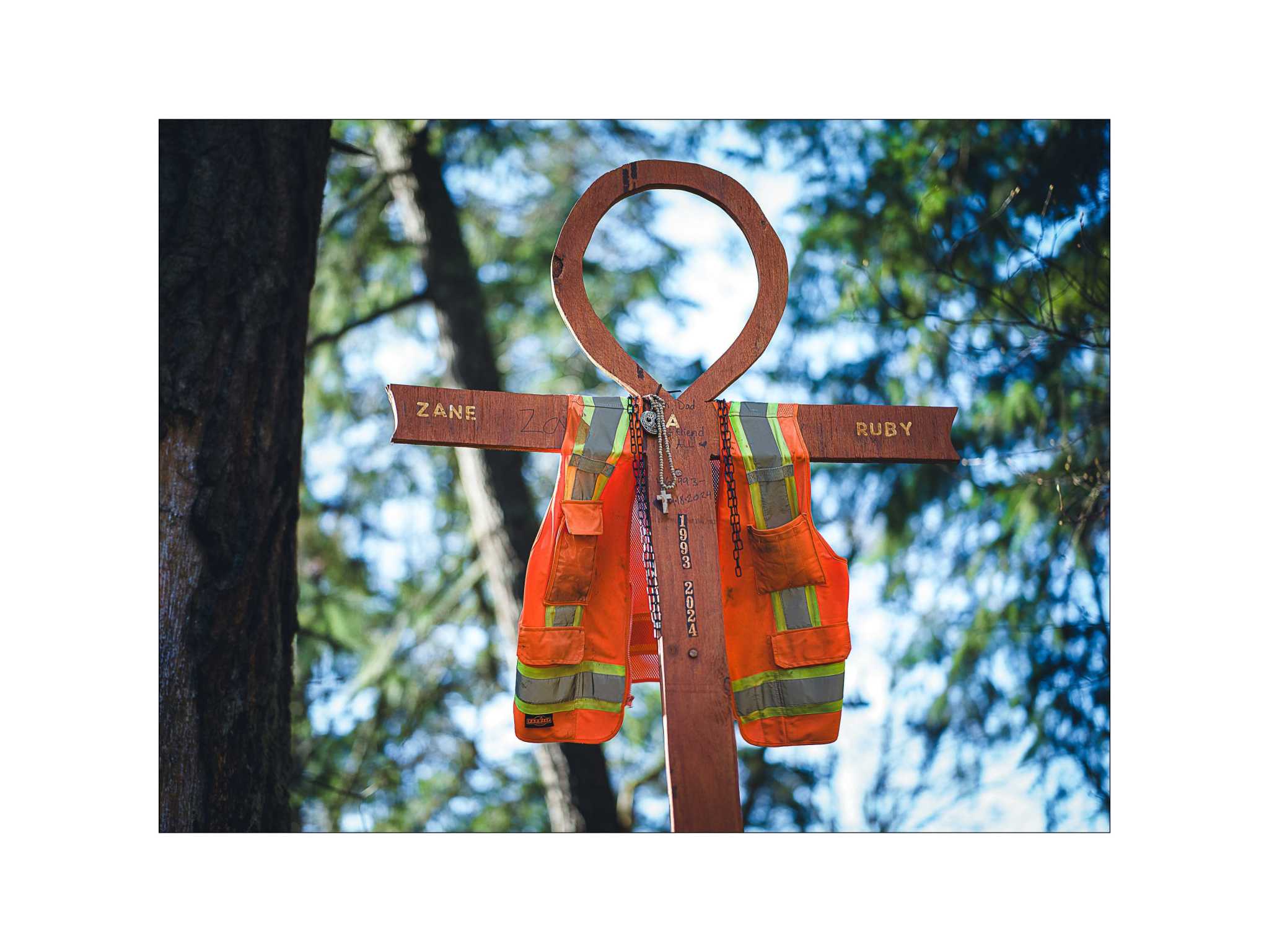 I’m not sure what the significance of the vest is, but it makes an interesting addition to the memorial blowing in the near constant wind up the gorge.