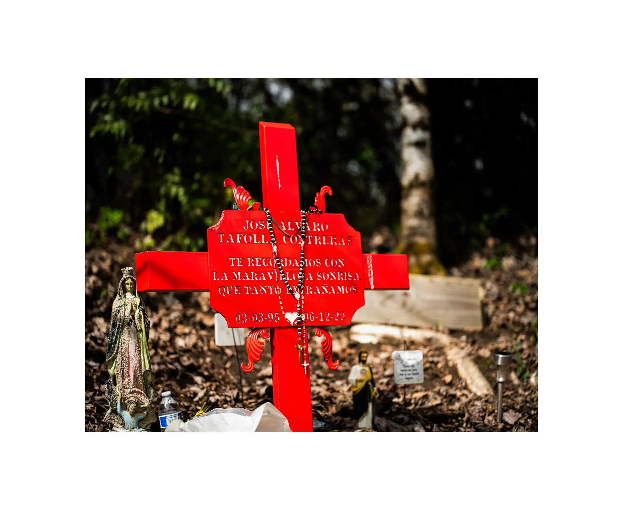It’s always difficult for me to put the descanso in context — often it requires shooting them from behind and I am rarely happy with how that looks — but in Micah’s case I was able to get a shot that shows oncoming traffic and provides some sense of “where” this photo was taken.