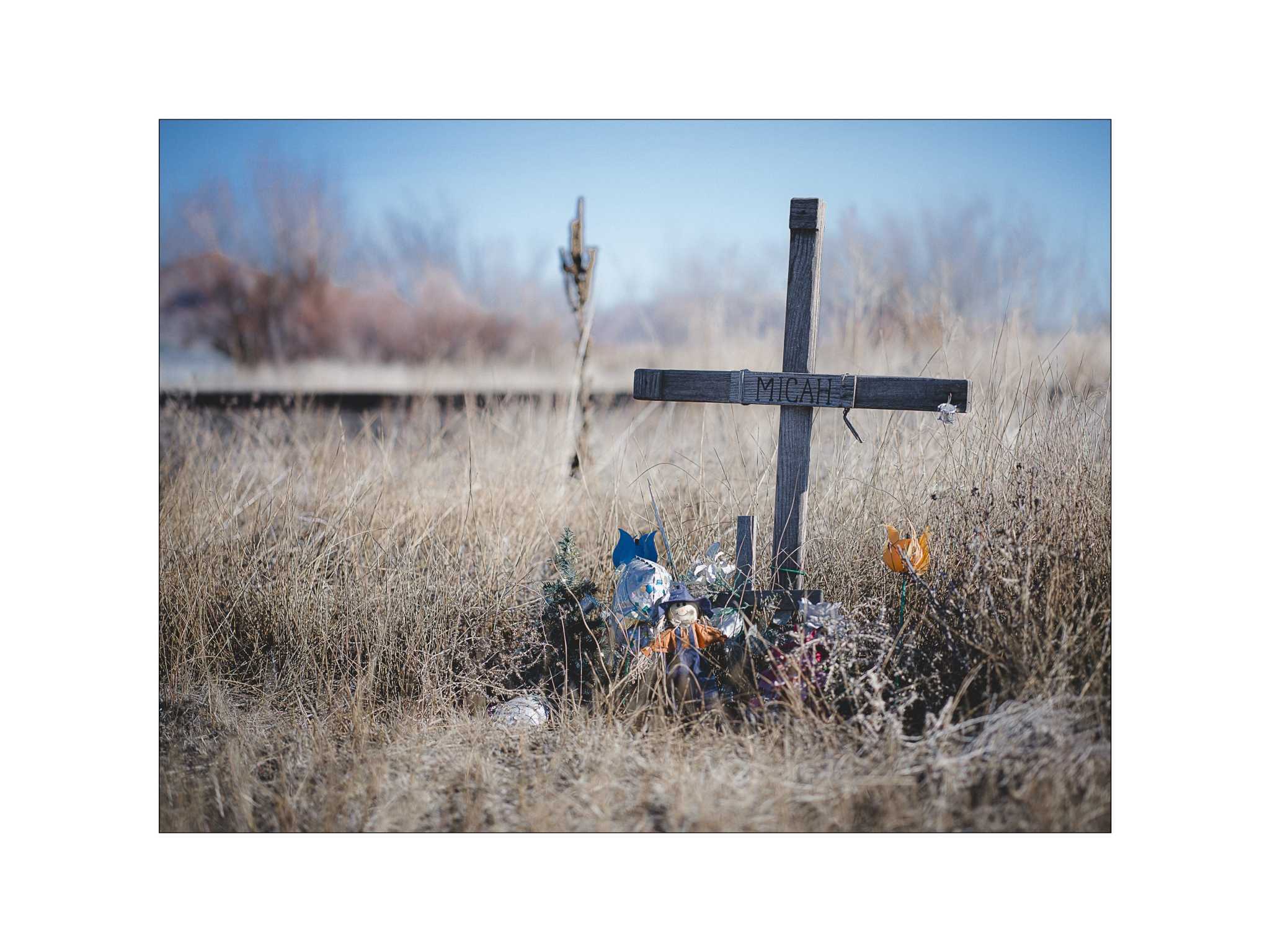 Micah’s descanso is almost hidden off the East side of the road on Highway 97 just outside of Terrebonne, Oregon. He crossed the center line in his Honda Accord and it was no match for the oncoming Ford F150.