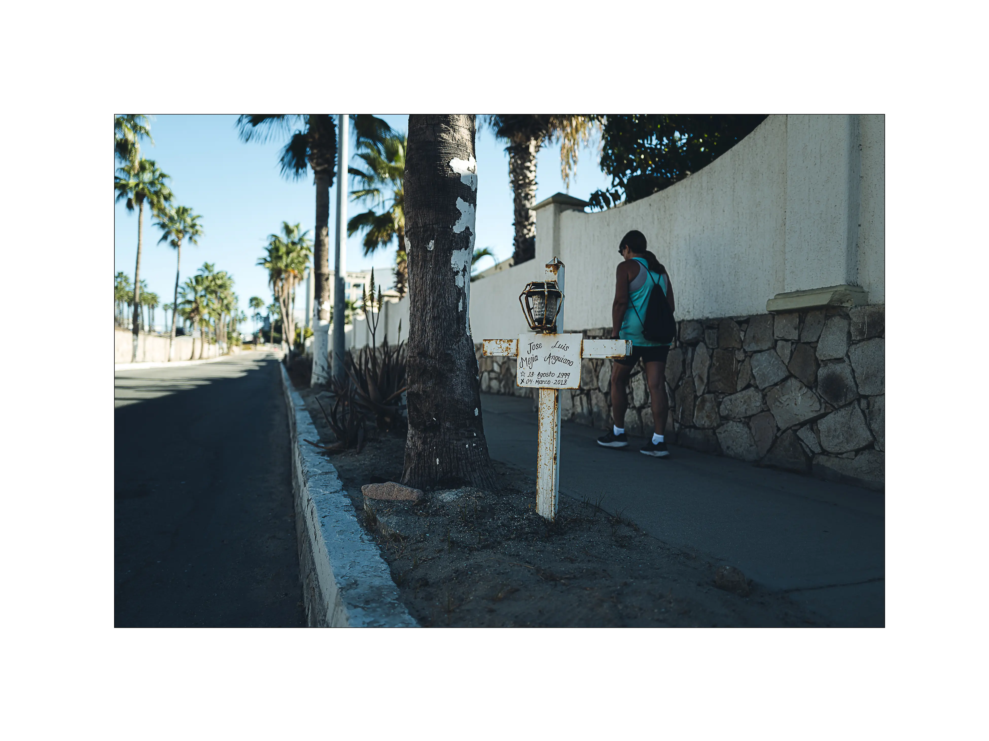 It’s always a little strange to see these memorials on city streets but I should not be surprised; deadly accidents happen everywhere. As I was shooting this young woman walked by, possible taking a route she does everyday.