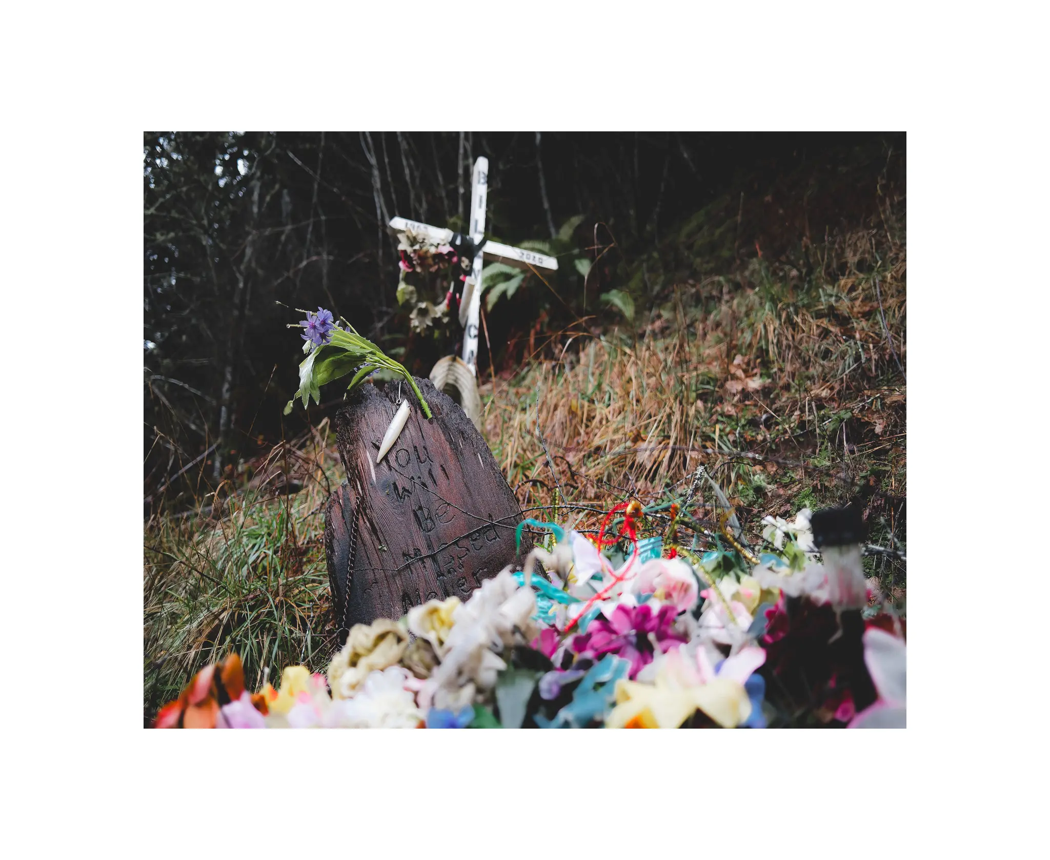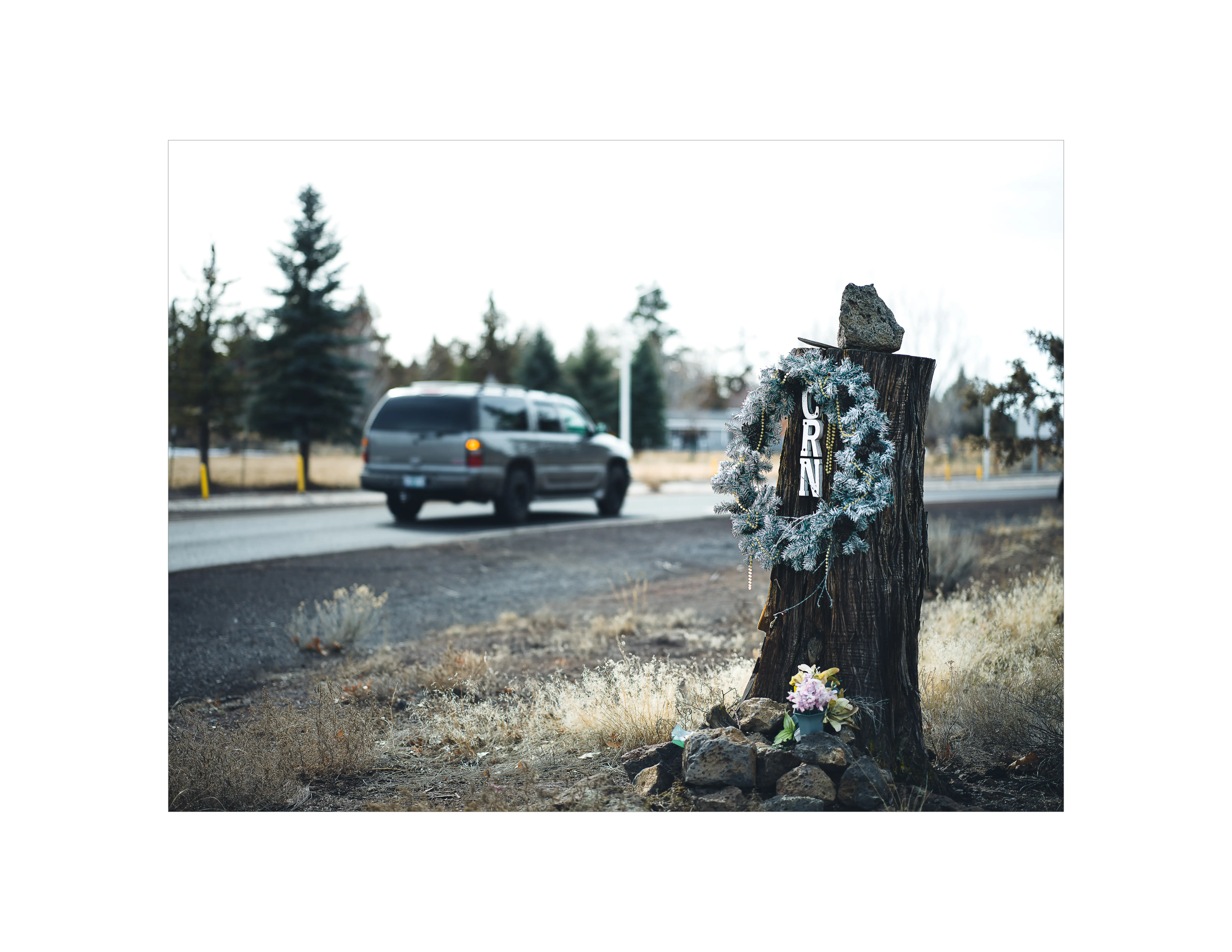 Here’s a really sad one with a slightly less sad outcome. This seemingly anonymous descanso was at the side of a brand new traffic circle at Powell Butte and Alfalfa Market roads in Bend. Bend has gone a little “roundabout crazy” in the past decade, and they seem to pop up anywhere and everywhere giving locals something to complain about.