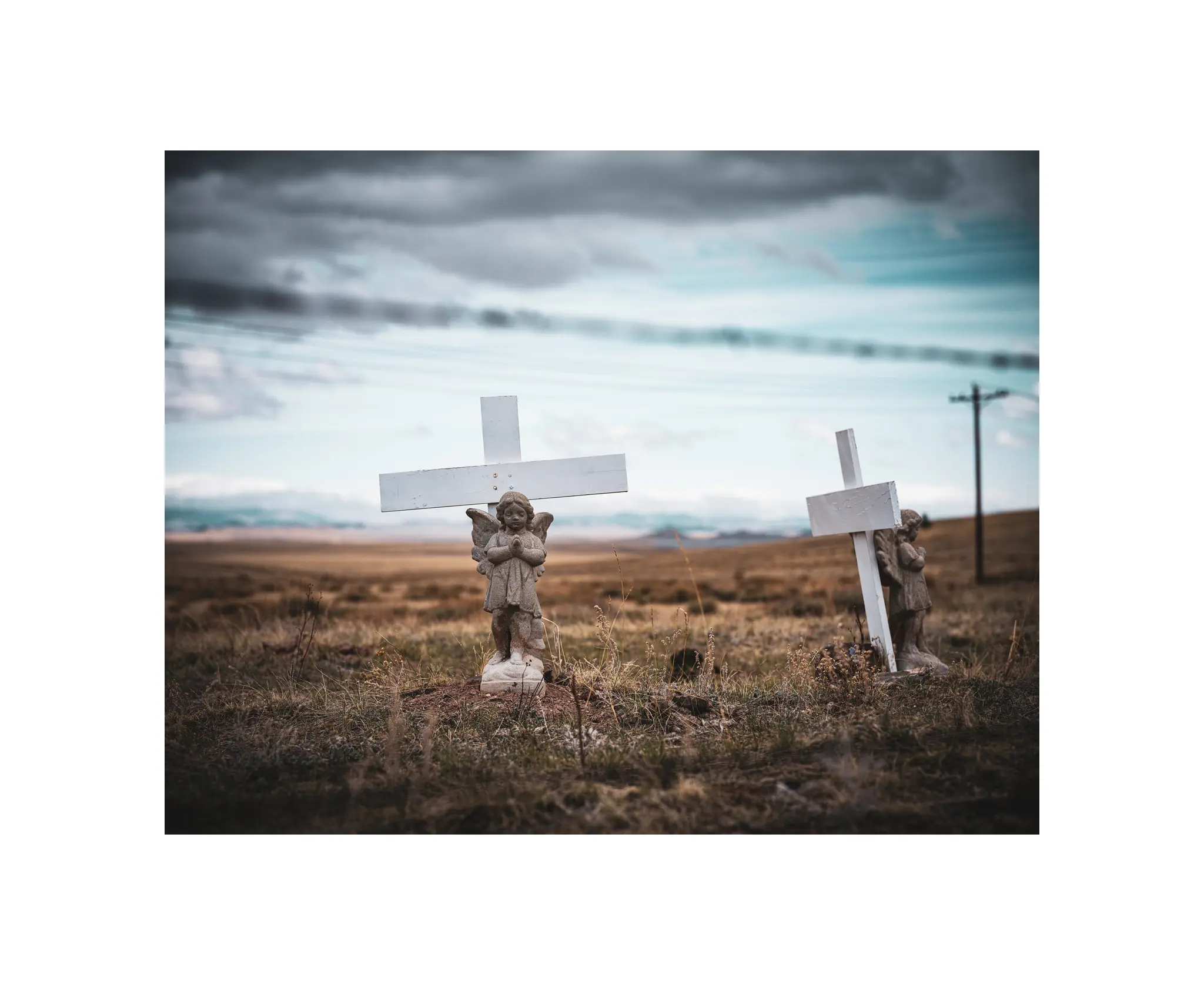 Still, it has the hallmarks of descansos including several U.S. flags strewn around on the ground the cross; no doubt these were proudly planted years and years ago. But otherwise no markings, no text, no nothing to identify the poor soul who lost their life here.