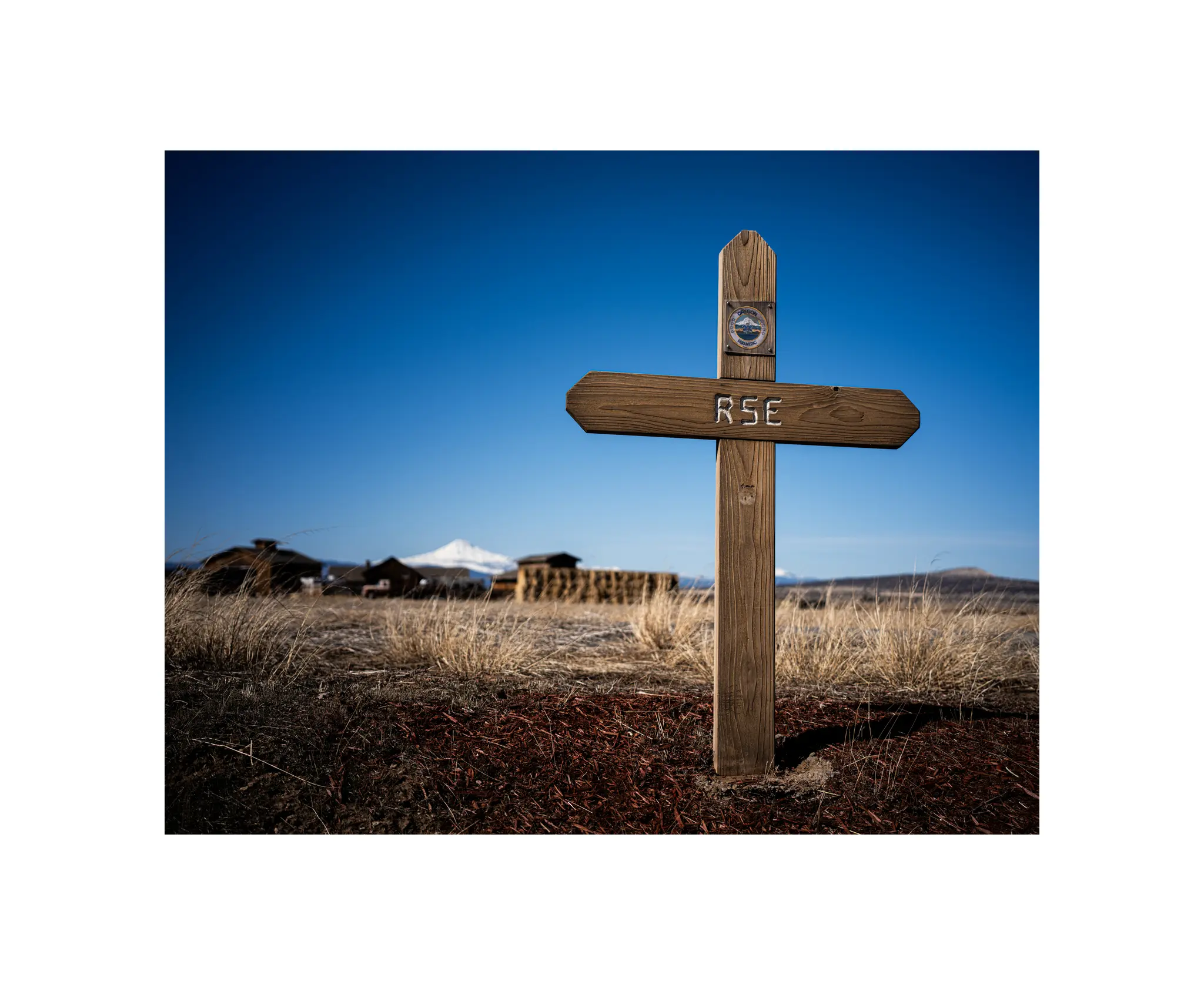 He was survived by his wife, Marian, and seven children, according to the Bend Bulletin. His memorial is backdropped by an incredible view of the mountains in Central Oregon.