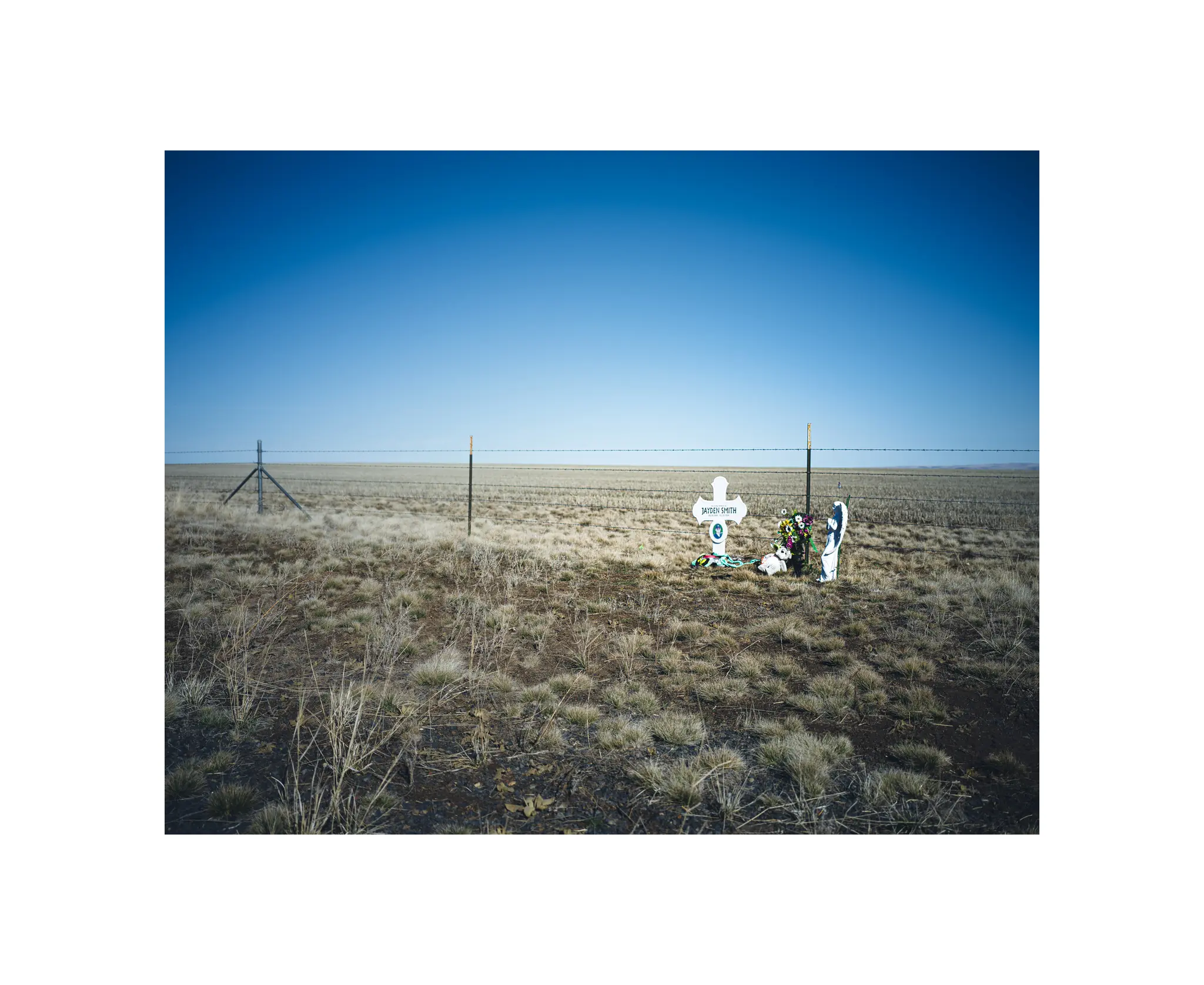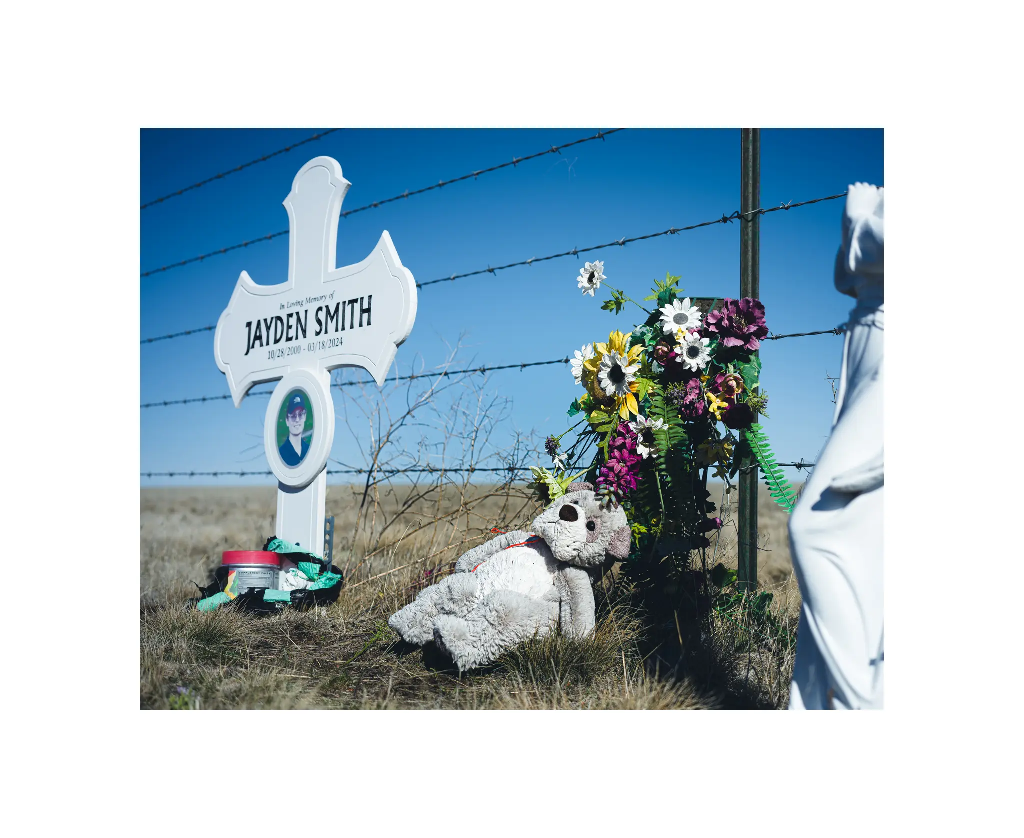 His descanso is beautiful and very well kept, although I expect that since the accident happened just under a year ago in March 2024. Fresh looking flowers, a nice angel, and a very well considered cross with Jayden’s photo on it.
