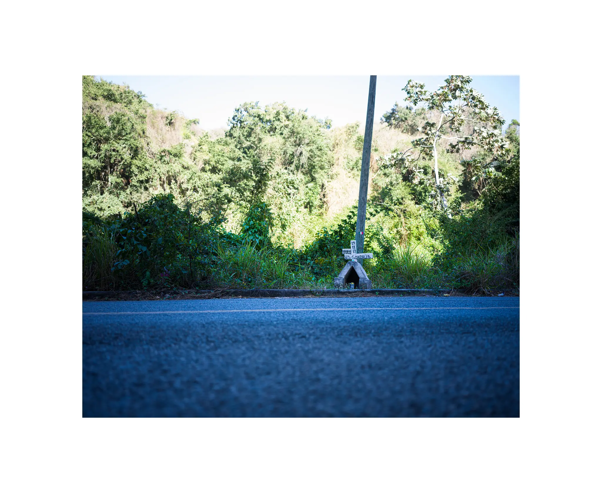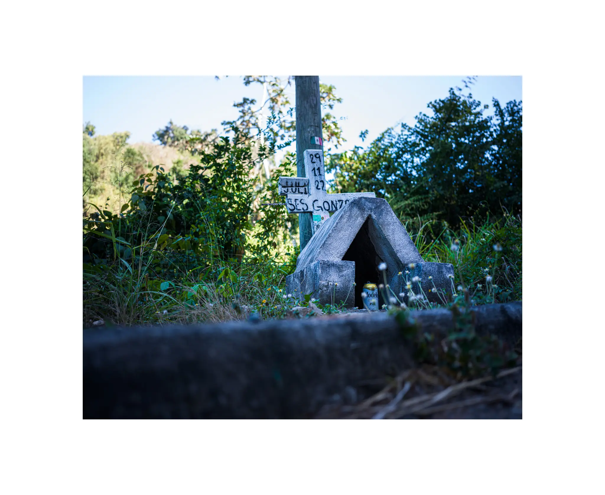 “SES GONZALES” was all that was left of the name? I’m not even going to guess at the first name, invariably I’d get it wrong. And while the cross wasn’t very old — it looks like the accident was on November 11, 2022 — it was showing signs of decay, likely due to being in more or less the jungle.