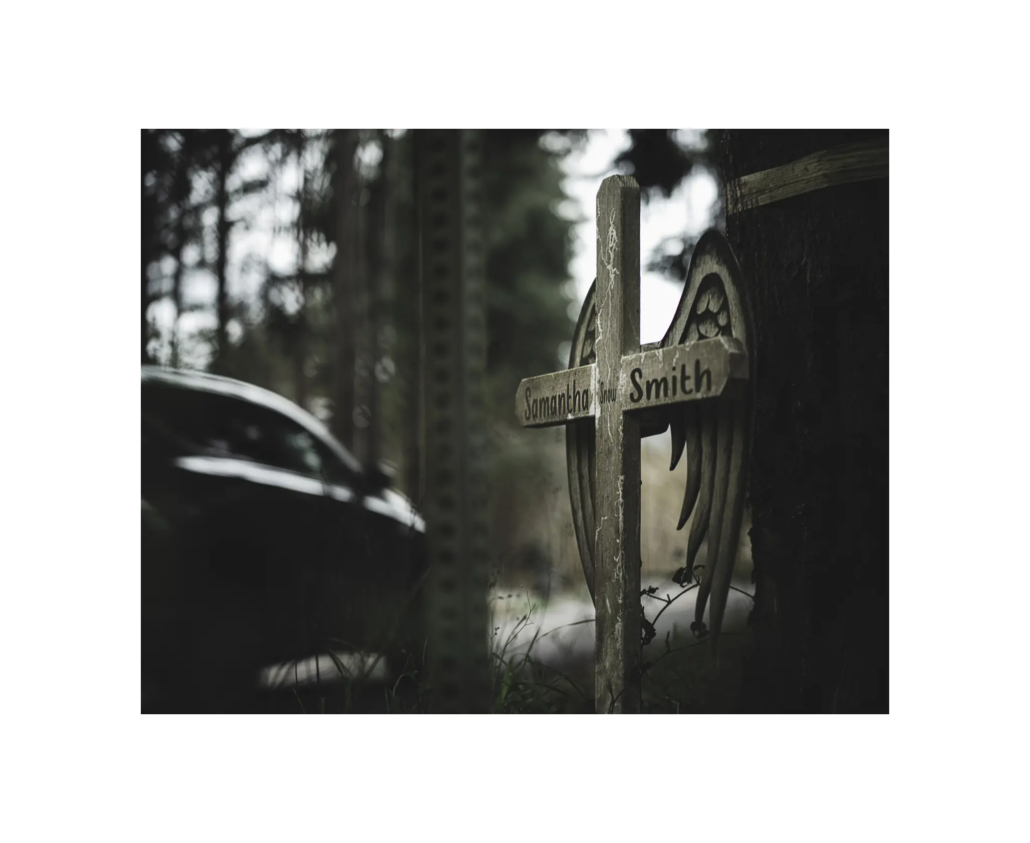 Smith’s memorial is both beautiful and elaborate, an angel’s wings on a cross. It sits in a particularly dark curve in the road and is almost haunting sitting there in front of the tree that, along with Mr. Manson, took her life. There is still “danger” tape around the tree, years after the accident, a remind I suppose of the risks we all take when we get behind the wheel … regardless of the questionable or objectively poor decisions we make before we turn the ignition.