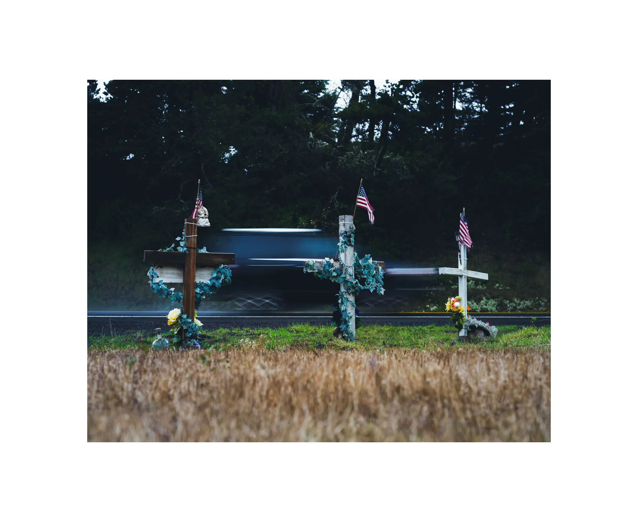 You can’t miss these memorials as you drive North on Highway 101 from Depot Bay towards Lincoln City. They sit just off the road in a field, with plenty of parking nearby for those wanting to pay their respects … or weirdos who want to take photos.