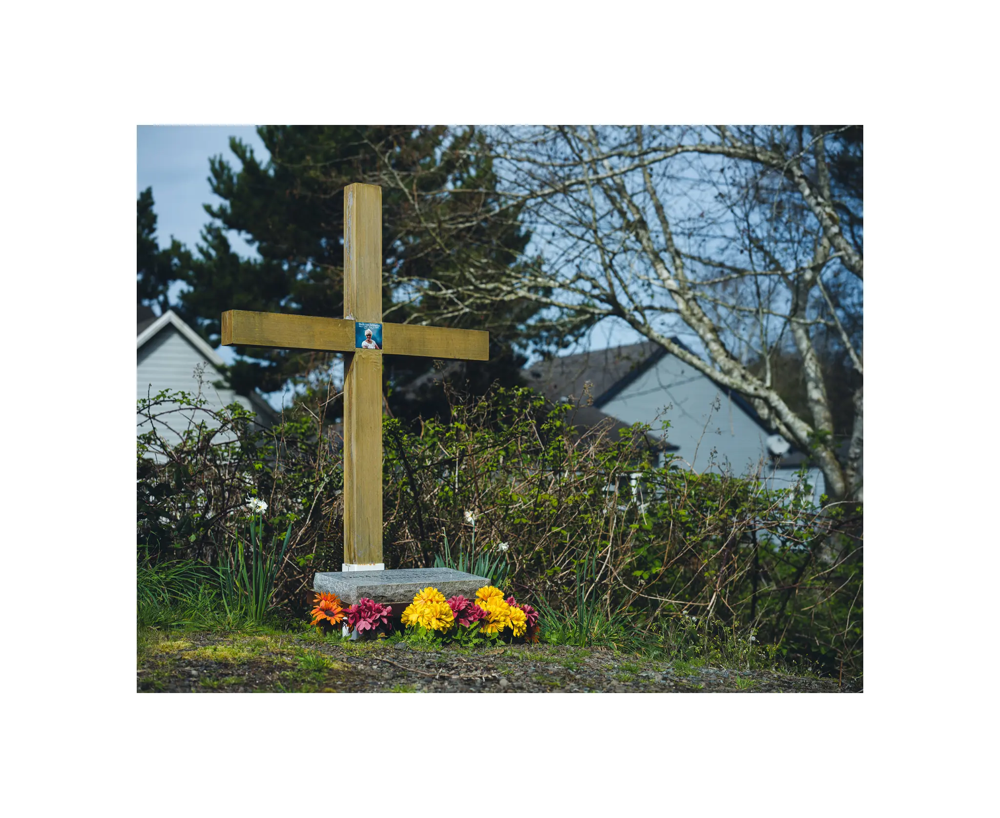 Often the stories associated with the descansos I photograph aren’t just about the deceased, and frequently it’s not the memorialized individual who made the poor decision that led to my camera coming out. This is the case of Sheila Ann Demartino of Rockaway Beach, Oregon.