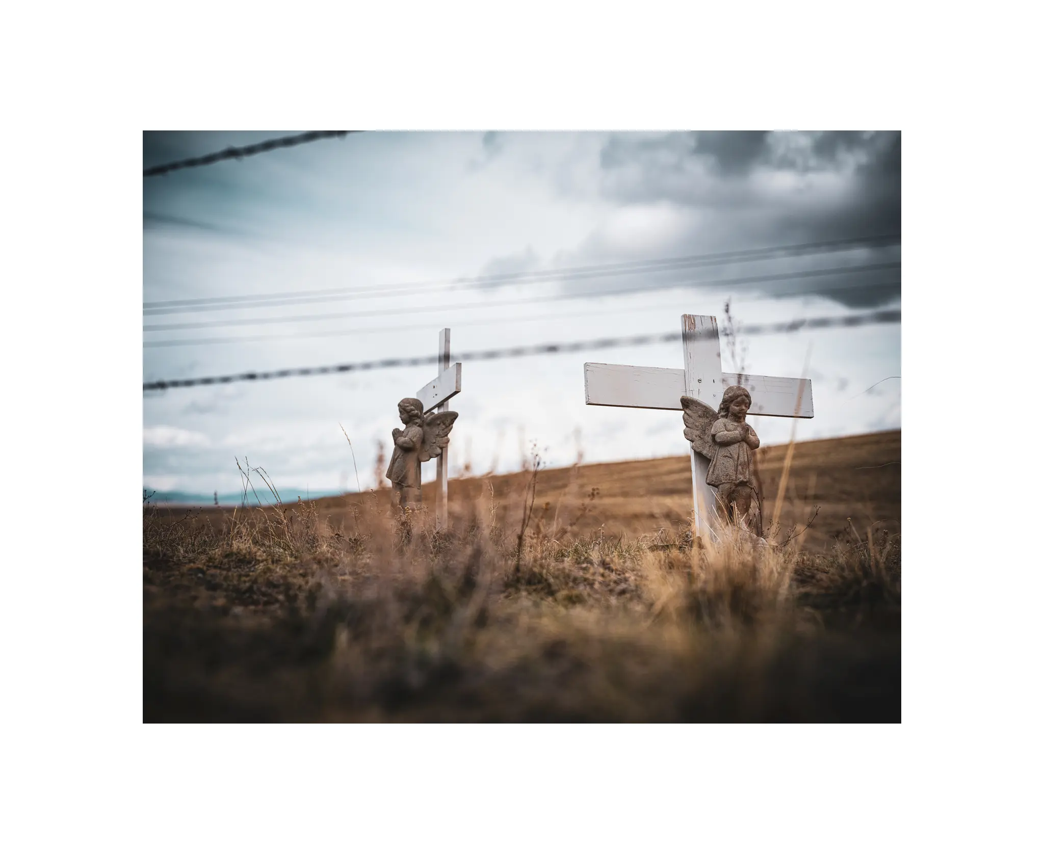 Towards the end of the second day of shooting, and just before I came across O’Keefe, I saw these two angels sitting and guarding a huge field.