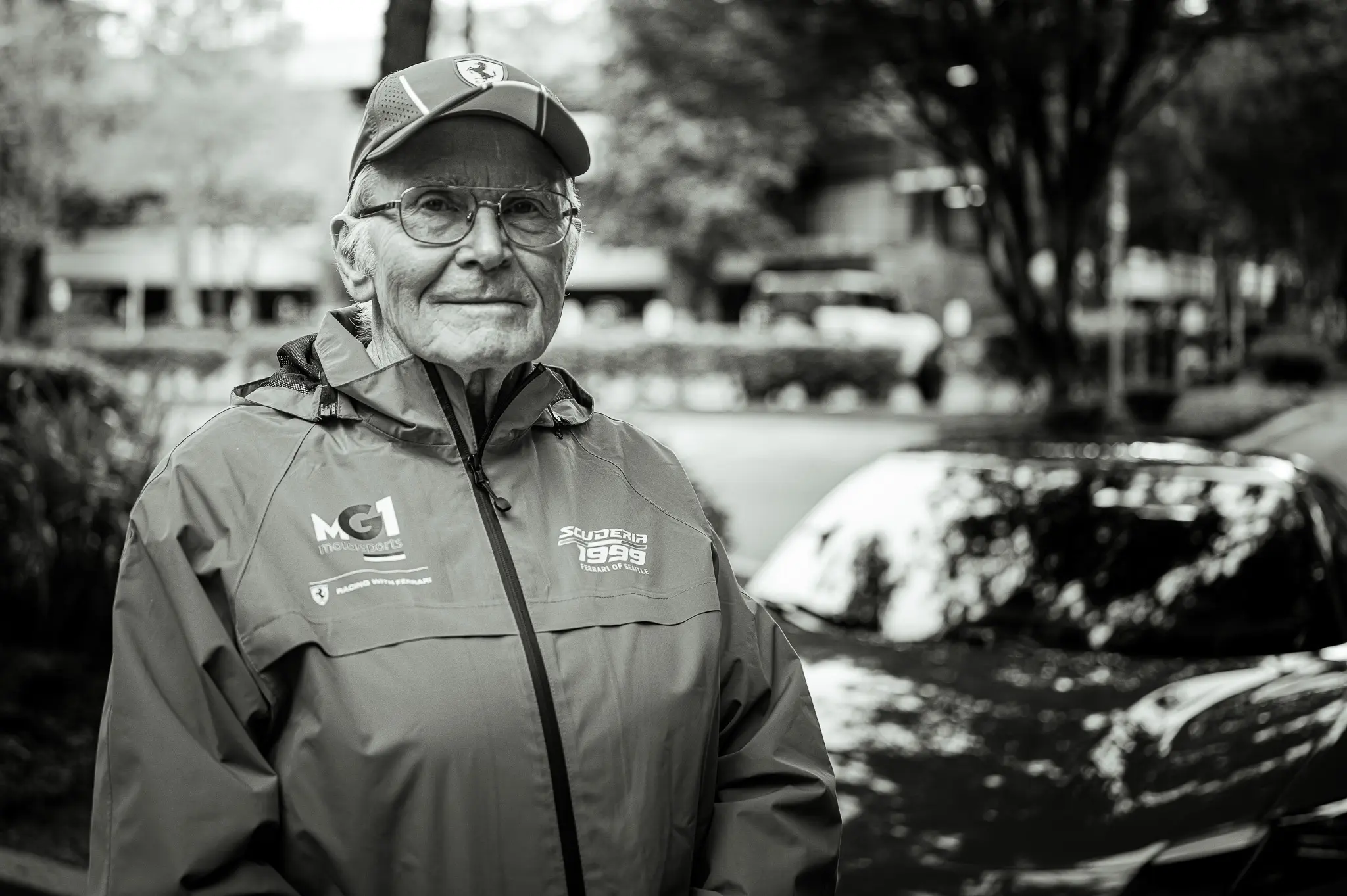 The photo at the top of this page of Wolf and the following photos of John in the One Drivers Club garage and Gary and his Ferrari 296 GTB turned out nicely, I think.