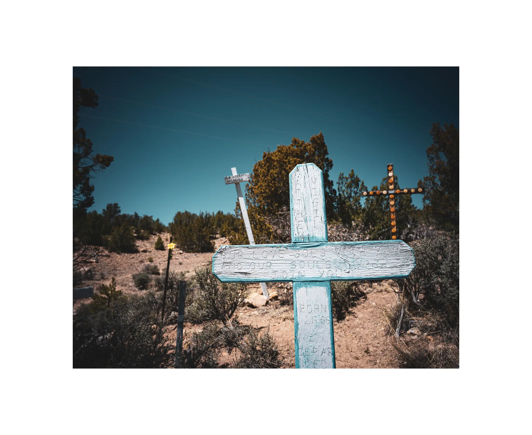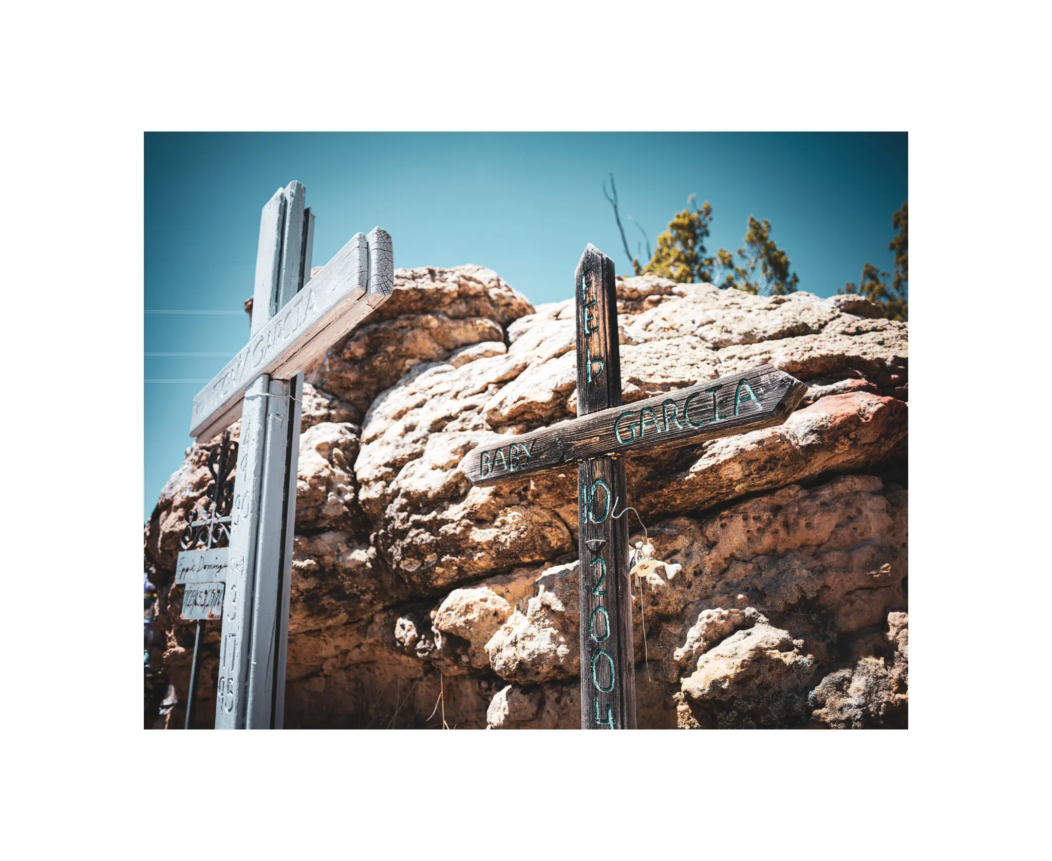 We had stumbled upon a shrine of some sort with descansos for maybe a dozen people. Initially I thought a bad car accident, but Amity pointed out that there were multiple “deceased” dates and even a stillborn baby, so something else was going on.