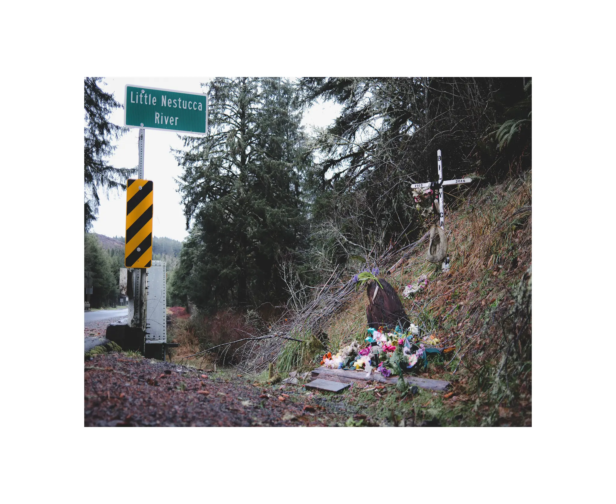 Another example of “how did I possibly not see this before” with Billy’s descanso out near the Oregon Coast. His marker is a colorful affair just before a bridge over the Little Nestucca river on a road I have travelled a dozen times in the past decade.